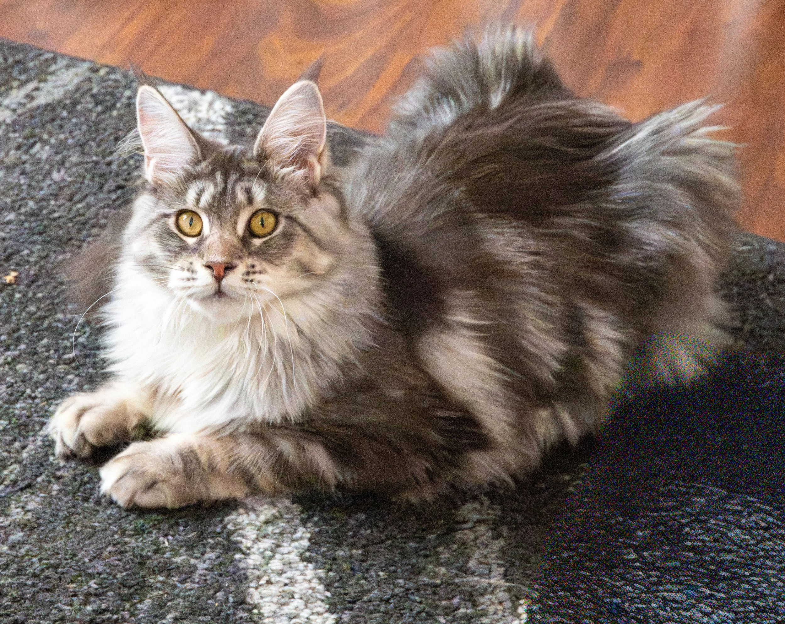 We had plans to add Venus to our roster as a breeding cat in 2025, but have learned that she would be better in a pet home. While she does not like to be picked up (an unusual Maine Coon trait), she is extremely sweet. She loves to be petted, kissed, and snuggled. Venus is an all around simple cat—she is not needy and could lay in the sun all day without a care in the world. She is recovered from her spay surgery and ready to go to a new home.