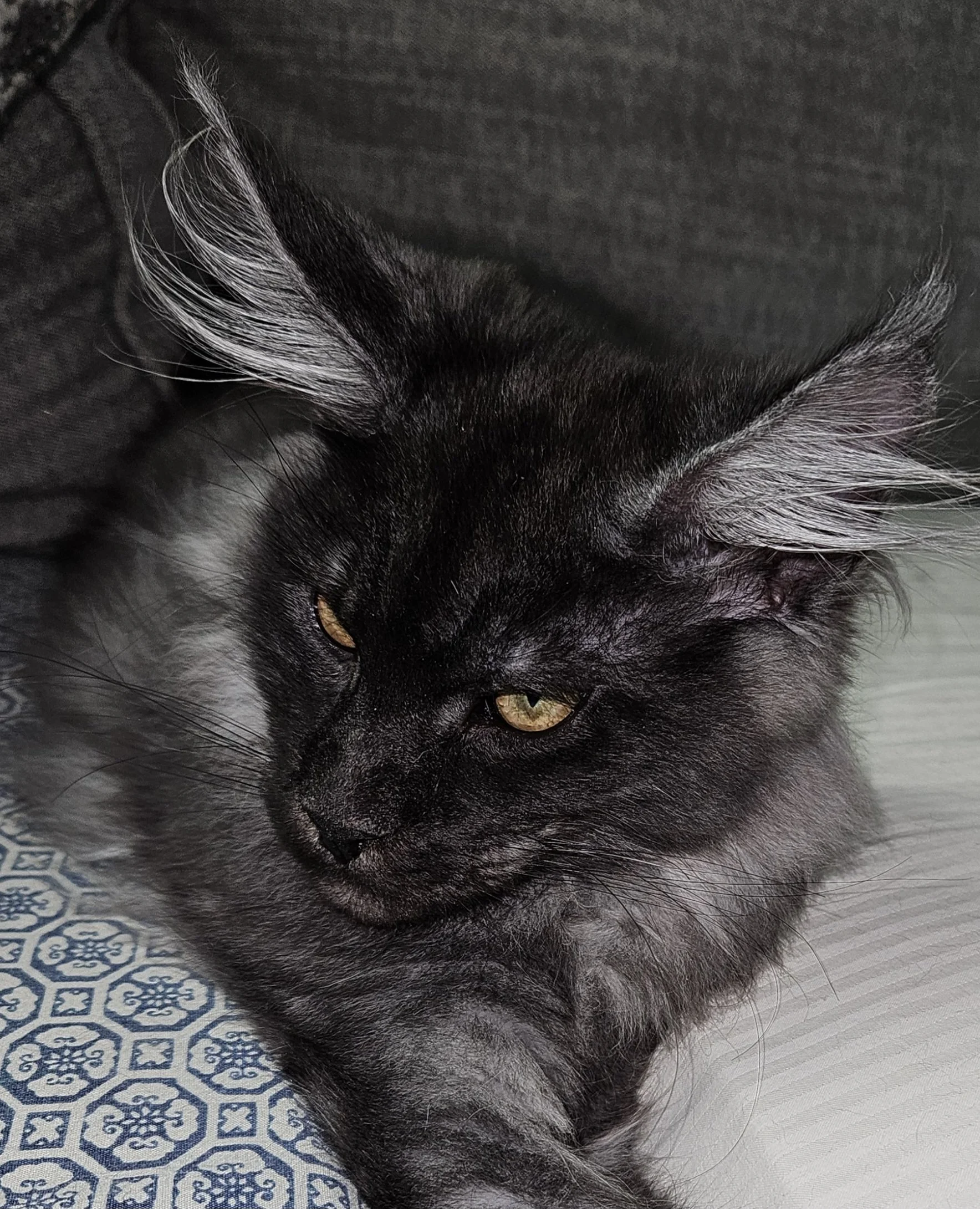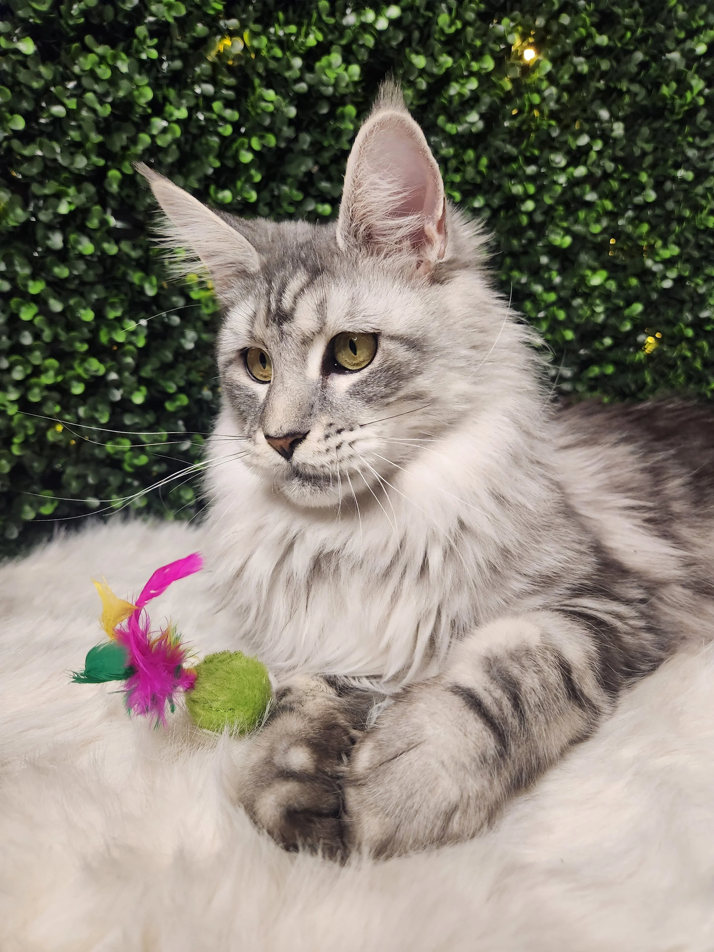 TICA color classification: Black Silver Ticked Tabby (NS 25)